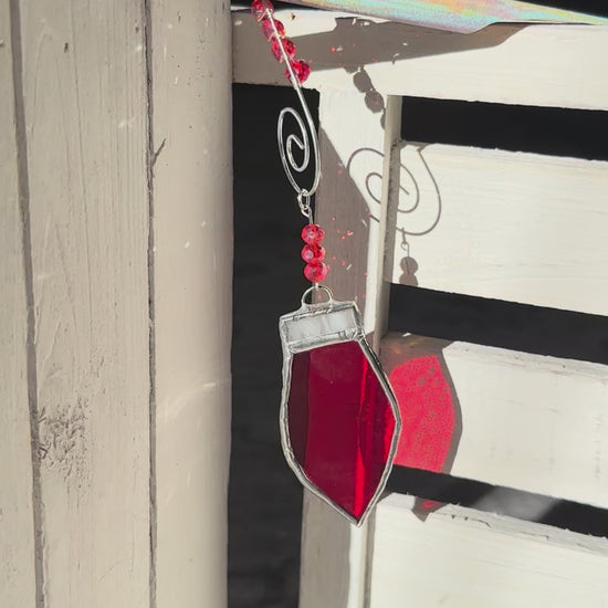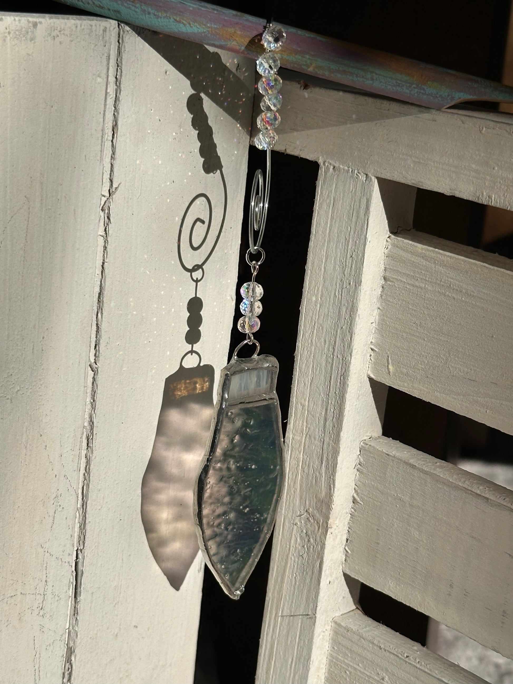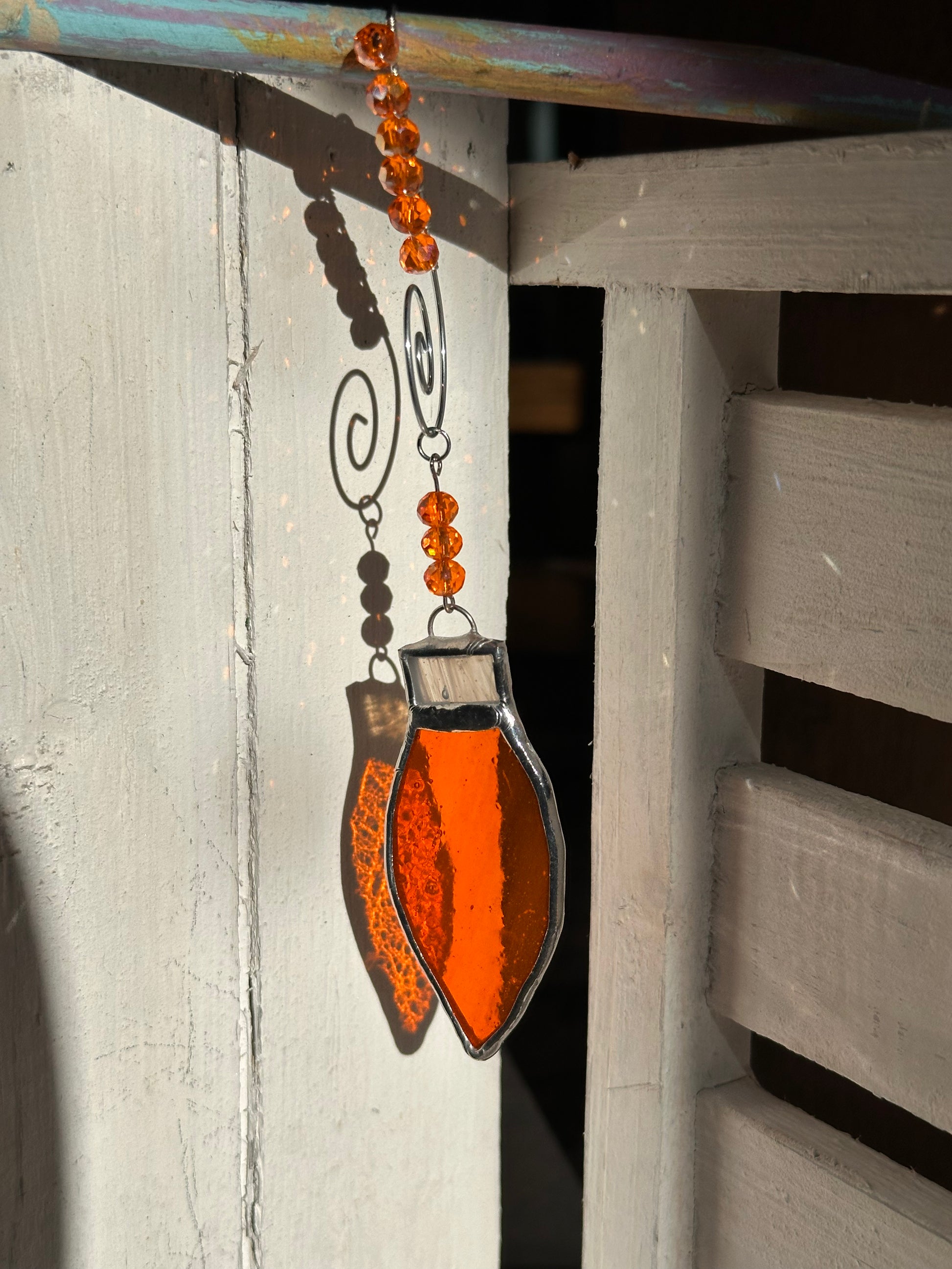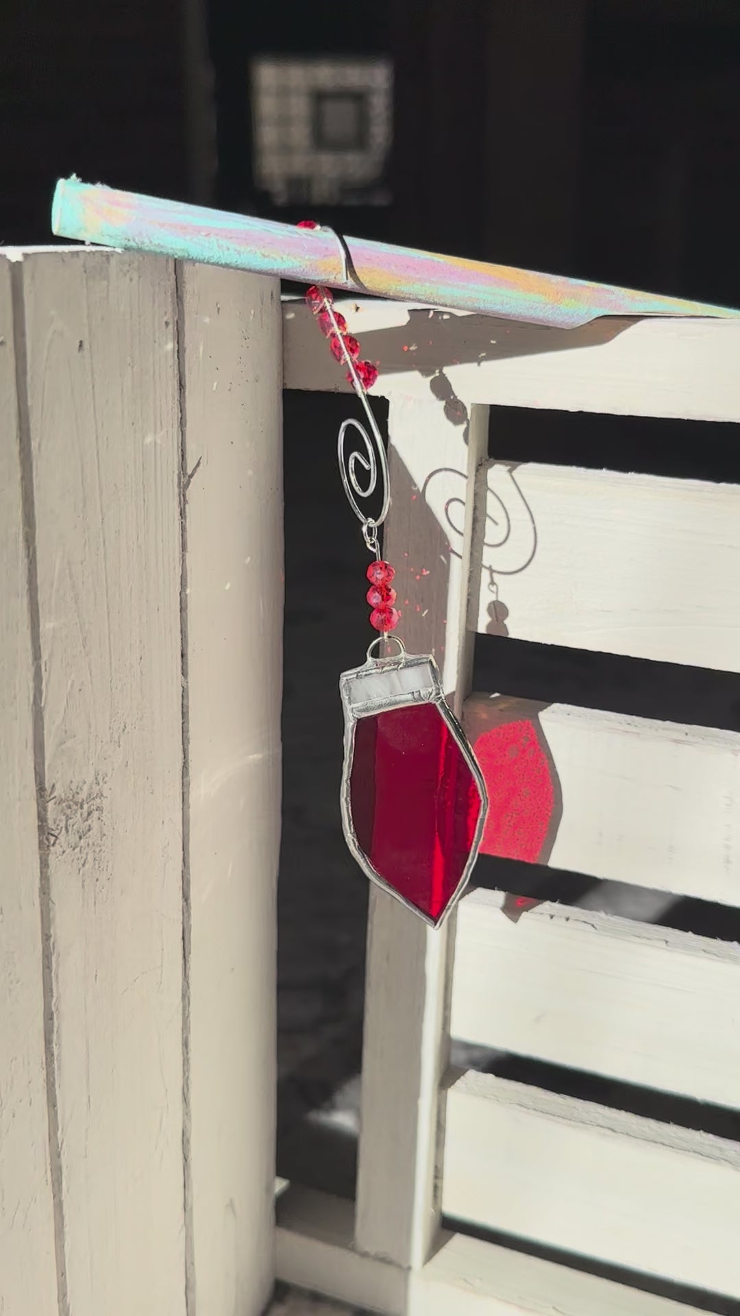 These beautiful little stained glass ornaments are the perfect gift for someone special in your life. They come with a sweet poem I wrote myself and are gift ready. I wire wrapped the hook with glass beads that truly sparkle in the light! More colors will be releasing soon!