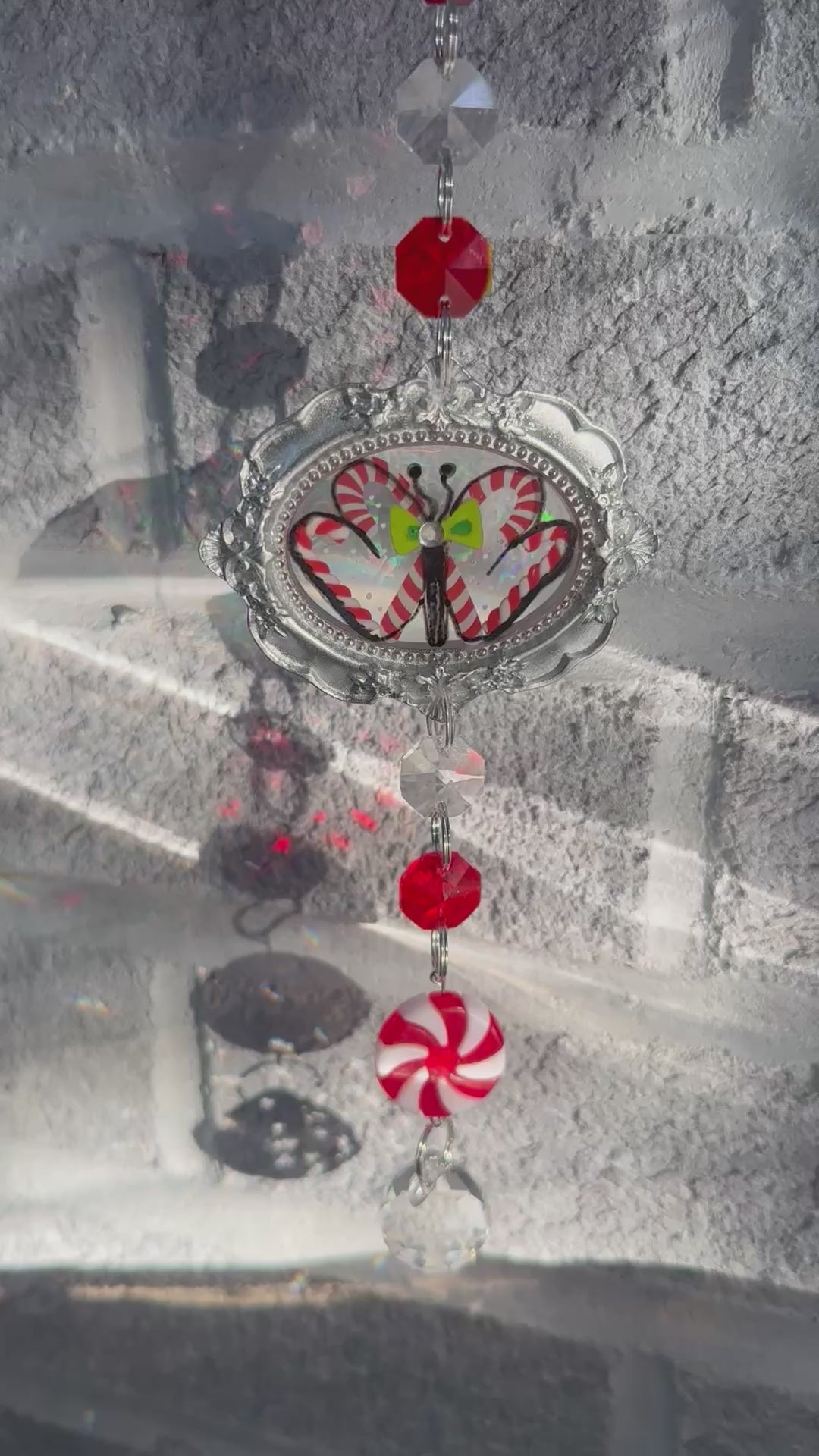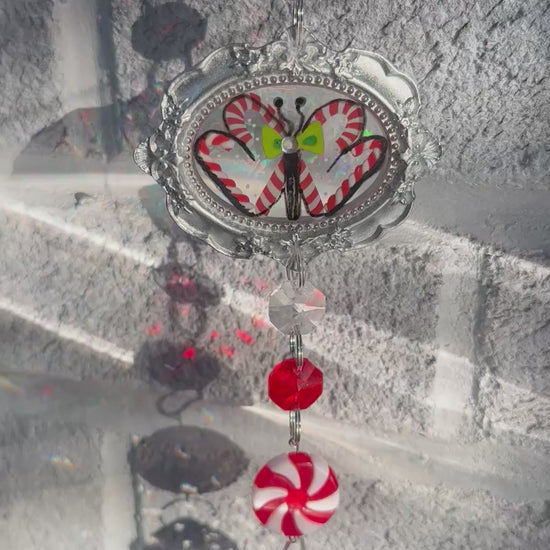 A candy striped butterfly dances in red and white, surrounded by sparkle and joy. Butterflies symbolize the beauty of change. Though traditions can be beautiful, don’t be afraid to create new ones. Its never too late to do exactly what feels right to you.